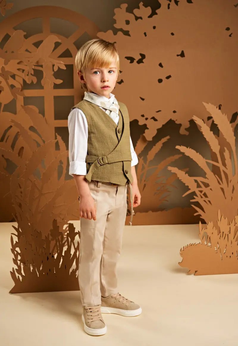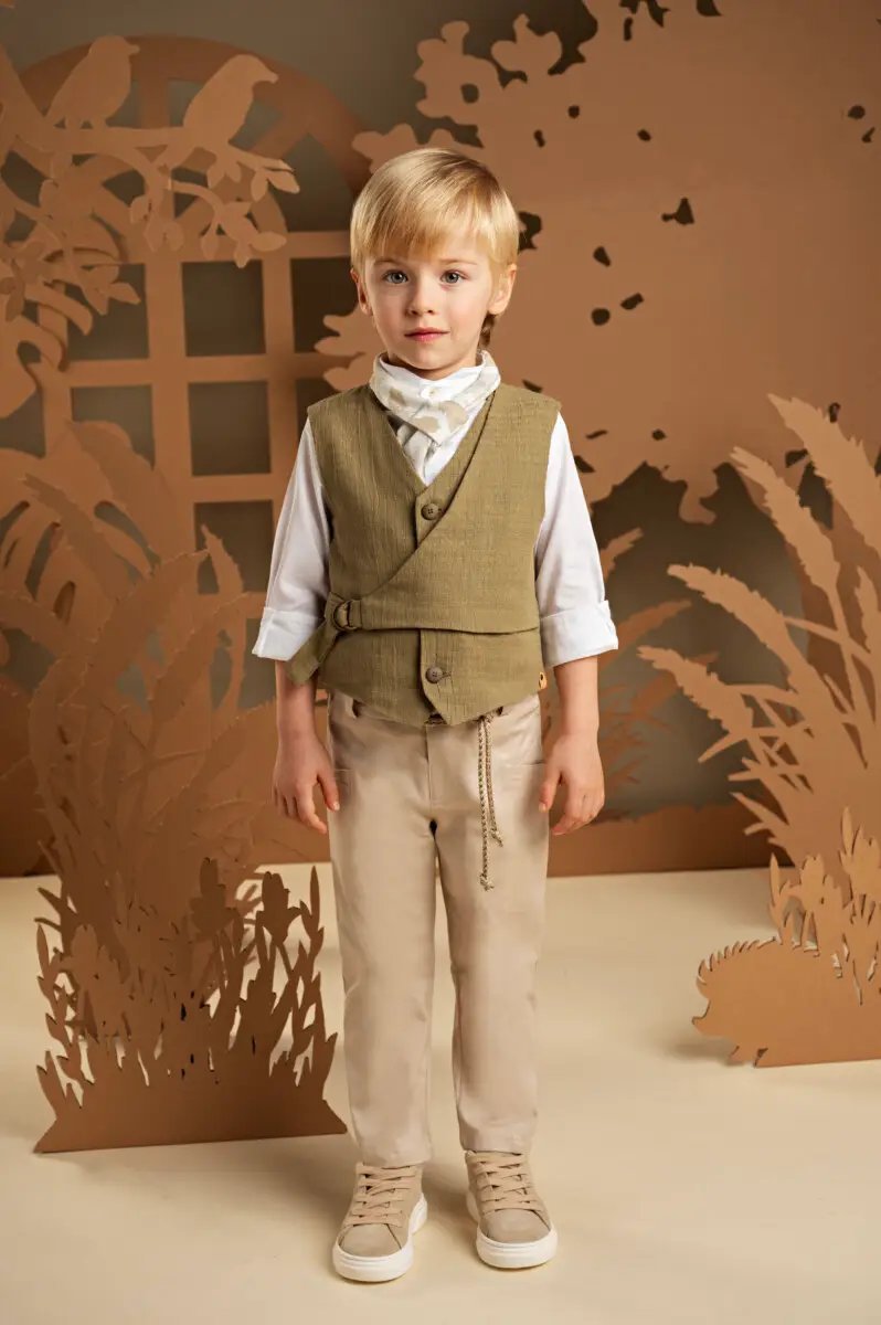 Ένα σετ που κερδίζει εντυπώσεις με τον συνδυασμό υφών και αποχρώσεων, ιδανικό για καλοκαιρινές εμφανίσεις με στυλ. Το παντελόνι από μπεζ βαμβακερό καμβά ξεχωρίζει για τα εντυπωσιακά του κοψίματα μπροστά και πίσω, ενώ το διπλό effect γιλέκο με πλαϊνό κλείσιμο σε υπέροχο βαμβακερό υφαντό ύφασμα σε λαδί τόνους προσθέτει πρωτοτυπία και στυλ. Το λευκό βαμβακερό πουκάμισο με Mao γιακά, η ζώνη από μελανζέ κορδόνι και το φλοράλ φουλάρι σε μπεζ αποχρώσεις με exclusive τύπωμα Baby Bloom ολοκληρώνει υπέροχα το look. Για το τελικό αποτέλεσμα, επιλέξτε ανάμεσα σε ψάθινο καπέλο ή υφασμάτινη τραγιάσκα, σύμφωνα με το προσωπικό σας στυλ.